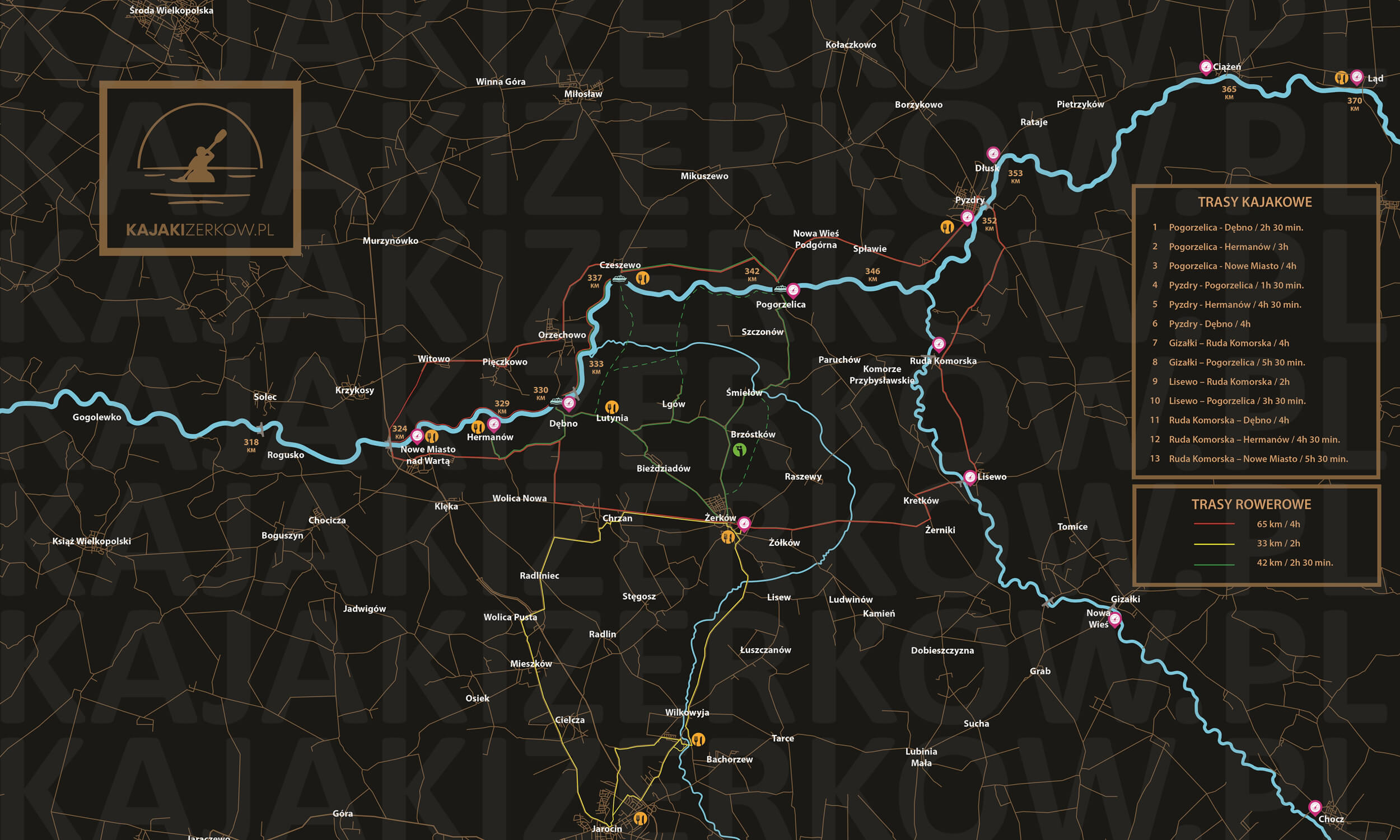 - Pyzdry – Hermanów (rzeka Warta) 4h 30 min.